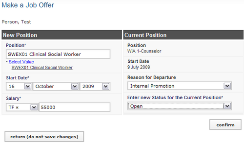The information that you just entered displays in the employee's record under the "Position Information" section.